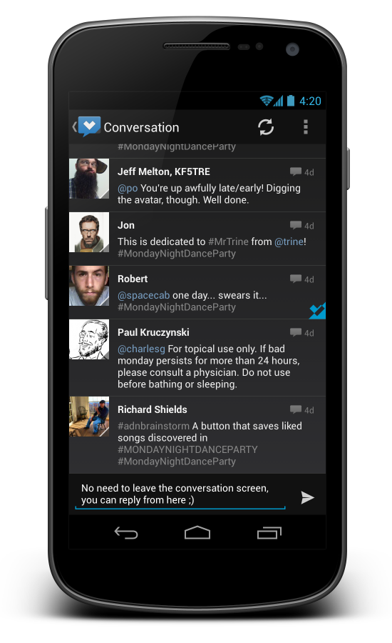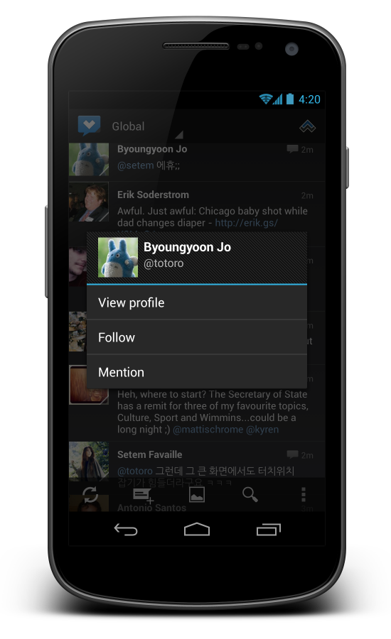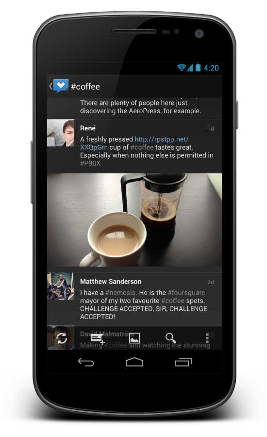 Whether it is a username, a hashtag or a link, you can just tap on it directly from any stream.